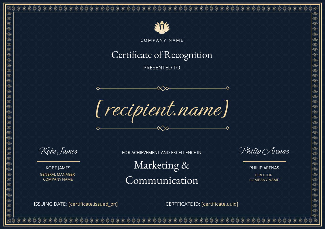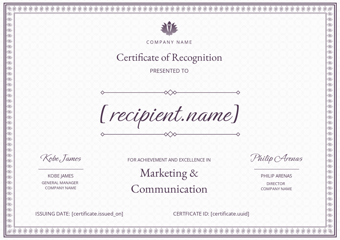 With pre-made templates you can quickly and easily customize certificates to suit your needs.